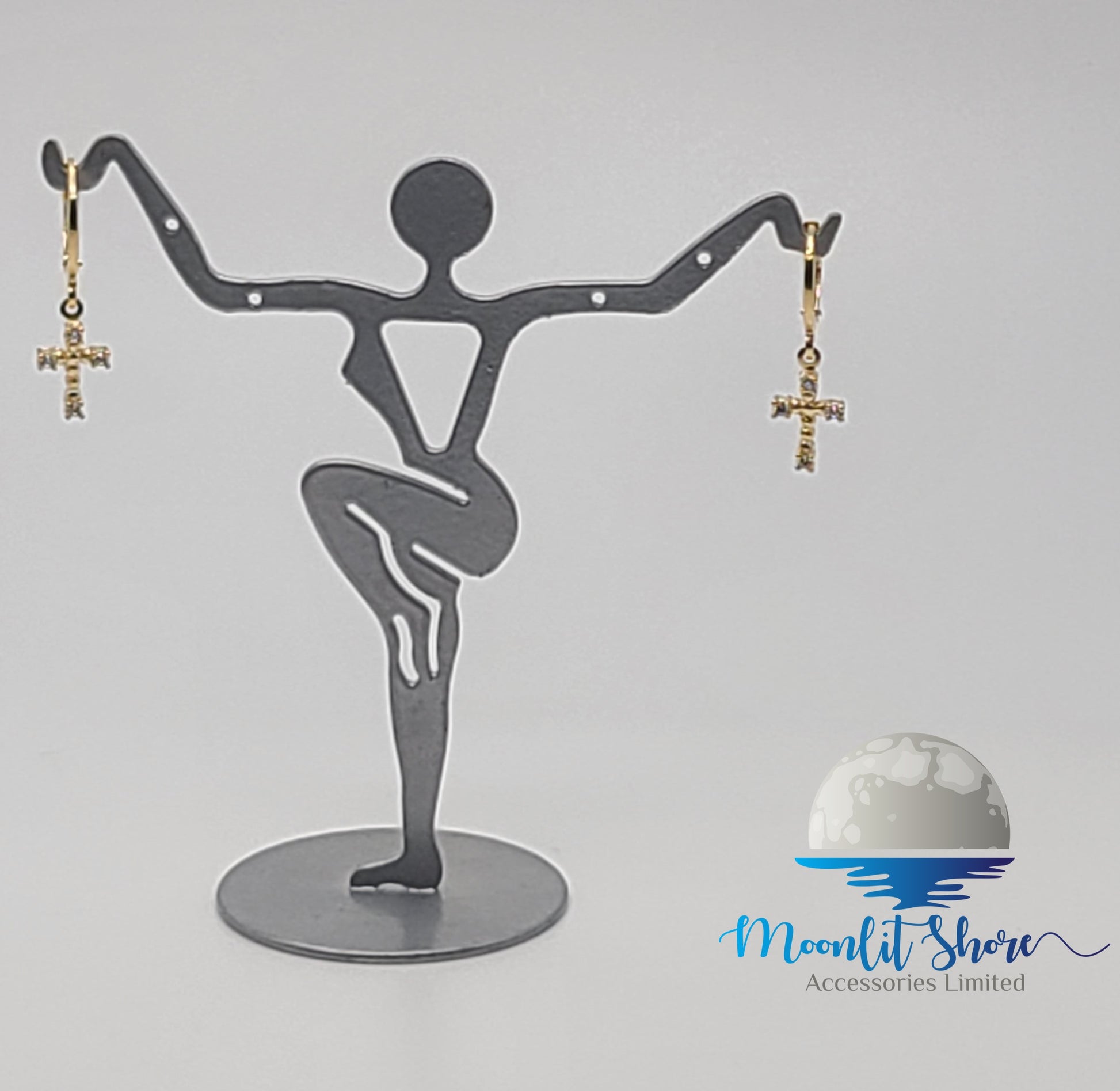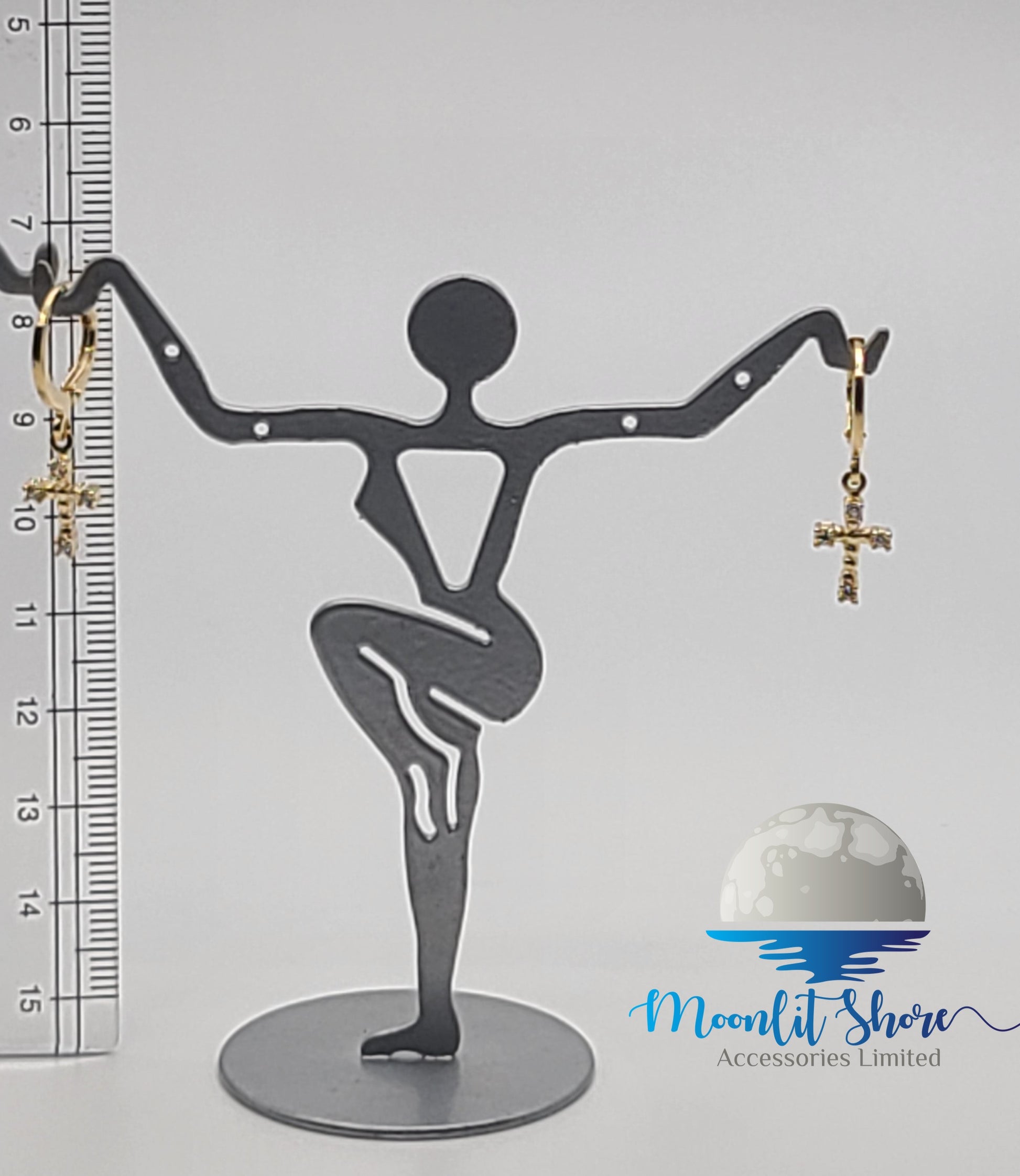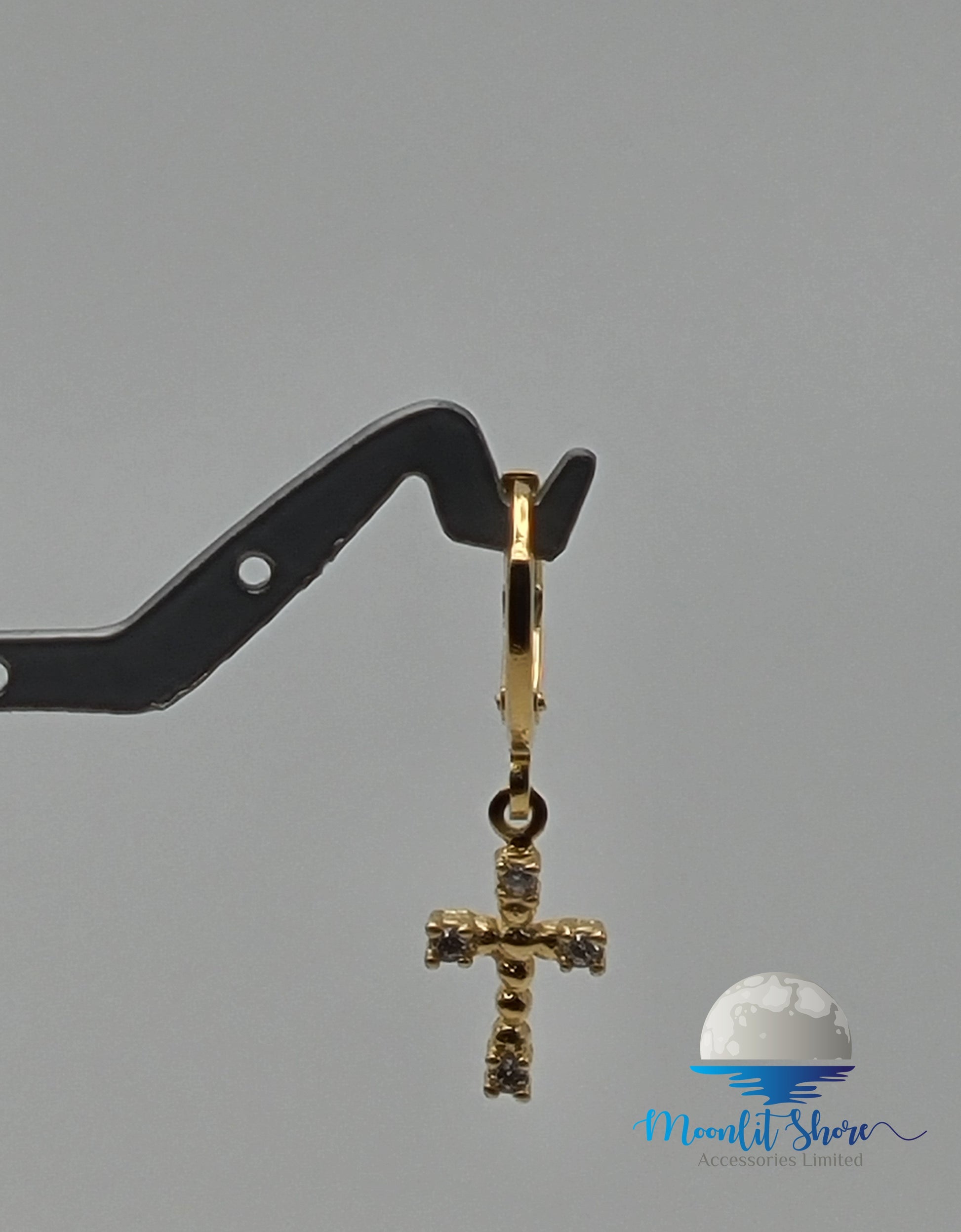 HUGGIES EARRINGS, WITH CLEAR CRYSTAL EMBELISHED CROSS